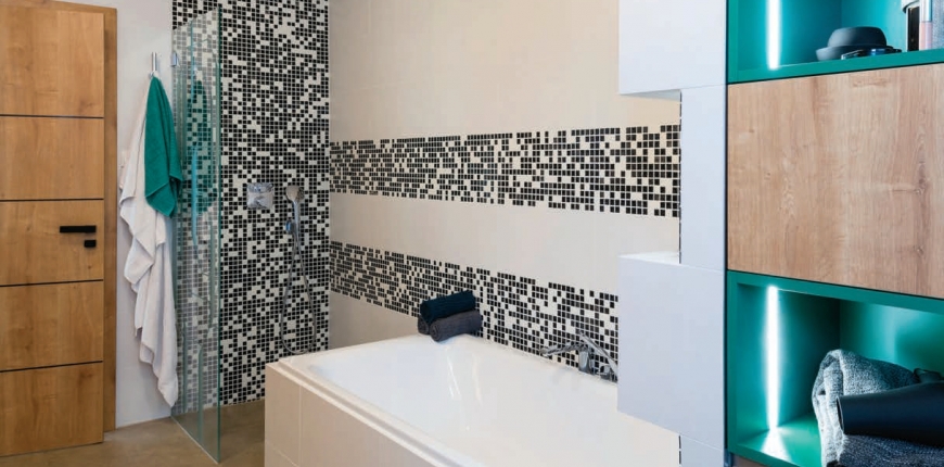 Mozaiki cenimy również za różnorodność kształtów. Najbardziej popularne są kostki kwadratowe. Równie często spotyka się elementy w  kształcie wydłużonego prostokąta. To nie koniec inspiracji geometrycznych. W  ofercie są także mozaiki w kształcie trójkąta, sześcio- i  ośmiokątów. Te o równych, ostro ściętych bokach mogą być harmonijnym dopełnieniem ascetycznej, surowej aranżacji, której zawsze dodadzą ciepła. Dużą grupę tworzą także mozaiki o mniej regularnych formach, np. inspirowanych naturą. Mogą mieć one choćby kształt wypłukanych przez wodę otoczaków, rybich łusek, morskich fal, liści miłorzębu japońskiego, a  nawet gwiezdnych konstelacji. Ich zastosowanie doda charakteru każdemu nowoczesnemu wnętrzu, pozwoli zindywidualizować i  wzbogacić nawet najbardziej banalną aranżację złożoną z zestawu typowych szafek kuchennych czy popularnych sprzętów sanitarnych. Podobny efekt daje zastosowanie mozaiki w  kształtach inspirowanych kulturą materialną. To choćby kostki przypominające wzornictwo mauretańskie. Arabeski na ścianach sprawiają, że wnętrze zyskuje ciepło i staje się przytulne. Znacznie rzadziej stosuje się dzisiaj mozaiki stylizowane na stare, z celowo wykonanymi i kontrolowanymi przez producenta obtłuczeniami, budzące skojarzenia ze stylem antycznym. Wartością estetyczną są także melanżowe barwy często obecne na tego typu okładzinach, które dynamizują formę drobnych elementów oraz ich bogata faktura. Powierzchnia licowa mozaiki może mieć reliefy w postaci odciśniętych kratek, kropek czy fal. Większe modele, np. kwadratowe o boku ok. 5 cm mogą być zdobione wzorami budzącymi skojarzenia z azulejos.